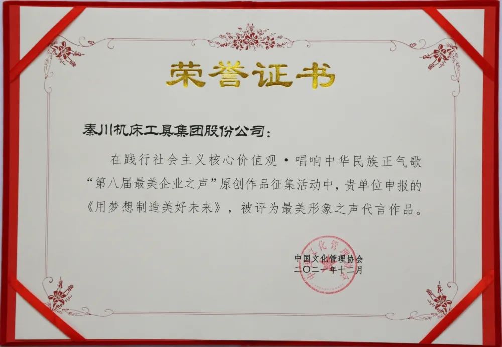 秦川集团荣获“新时代企业党建实践立异·规范单位”声誉称呼,,,,,,,选送的原创短视频作品《用梦想制造优美未来》获“最美形象之声代言作品”。。。。。。。