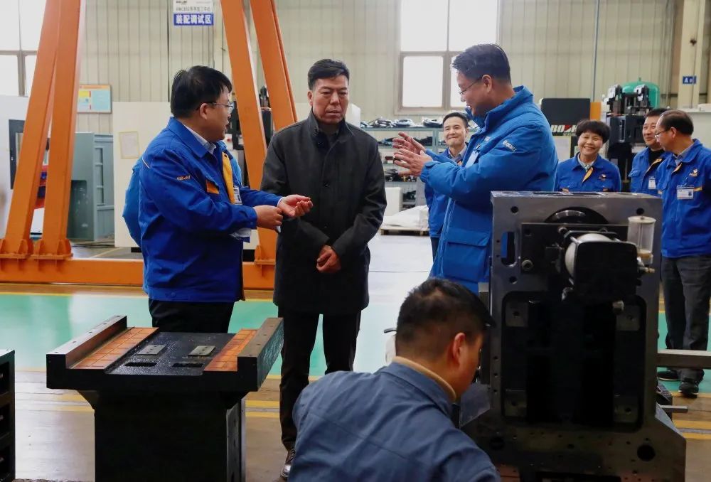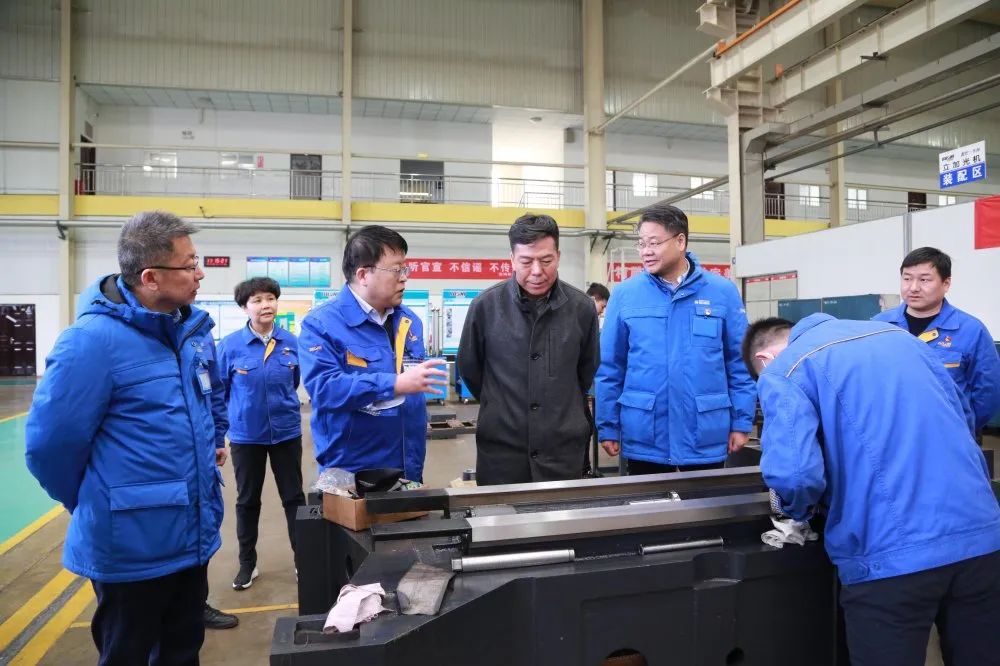 在宝鸡机床的整机装配、数字化车间,,,,,严董事长详细相识企业一季度生产使命安排及完成情形,,,,,对企业新产品研发、智能产线等重点项目举行现场指导。。。。。。。。
