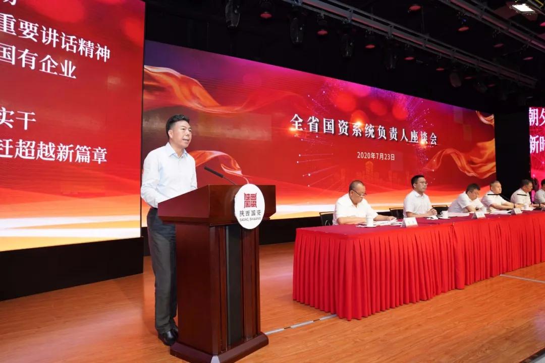 7月23日,,, ,,,,,陕西省国资委召开国资系统认真人座谈会,,, ,,,,,深入学习贯彻习近平总书记来陕考察主要讲话精神,,, ,,,,,转达学习省委十三届七次全会和国务院国资委半年岁情座谈会精神,,, ,,,,,总结上半年岁情,,, ,,,,,安排安排下半年重点使命。。。。。。唬唬唬唬聚会转达了省属企业2019年度谋划业绩审核及2017至2019年任期目的责任审核情形;;;;;表扬了2019年度省国资委系统优异科技立异团队和小我私家。。。。。。