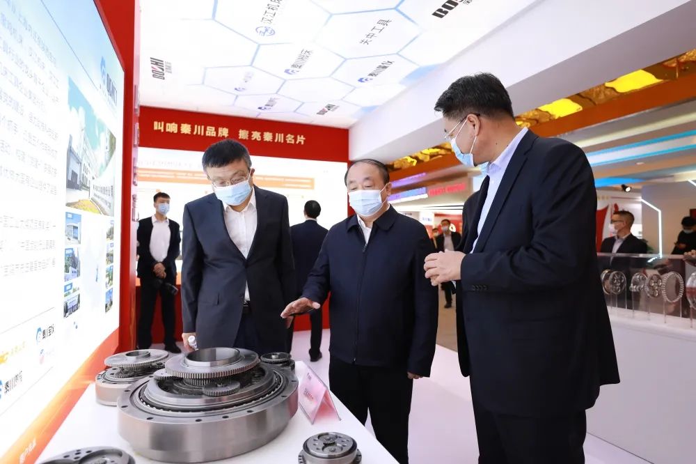 张广智部长莅临秦川集团展位旅行指导。。。。。。。受集团党委书记、董事长严鉴铂委托,,,,,,,,集团党委副书记、总裁李强陪同并汇报事情。。。。。。。